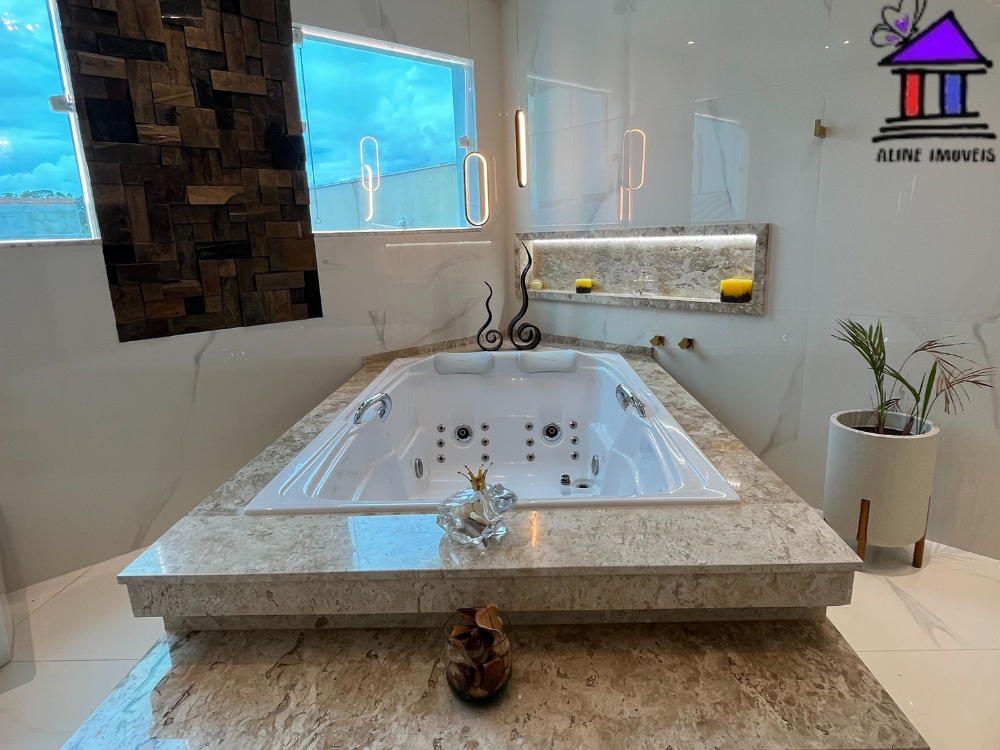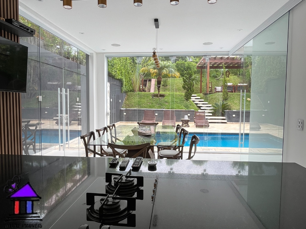 CASA ALTO PADRÃO COM, COZINHA SALA DE ESTAR, SALA DE JANTAR, 03 BANHEIROS, 03 DORMITÓRIOS SENDO 2 SUITES, ÁREA DE SERVIÇO, RESERVA, ESPAÇO COM PISCINA, ÁREA GOURMET, JARDIM DE INVERNO E VAGA PARA 06 CARROS. VALOR DE LOCAÇÃO: 25.500,00 INCLUSO: CONDOMINIO, ÁGUA, TV A CABO, PISCINEIRO, JARDINEIRO E IPTU